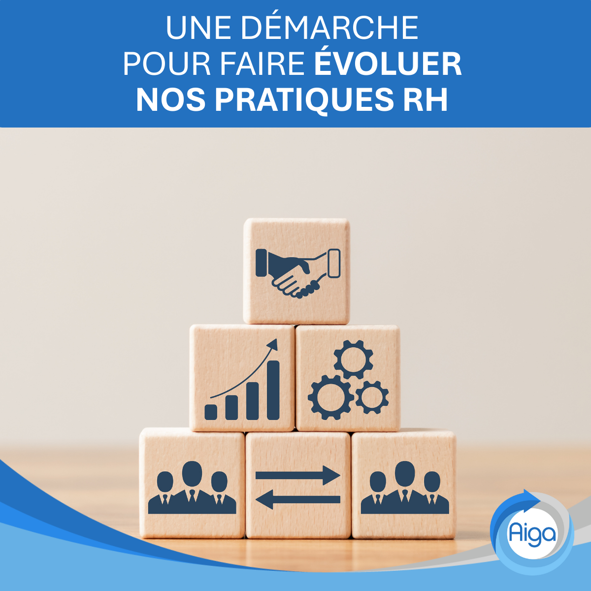 Un accompagnement RH pour faire évoluer les pratiques internes d’AIGA Dans une logique d’amélioration continue, AIGA a récemment engagé un accompagnement RH afin de porter