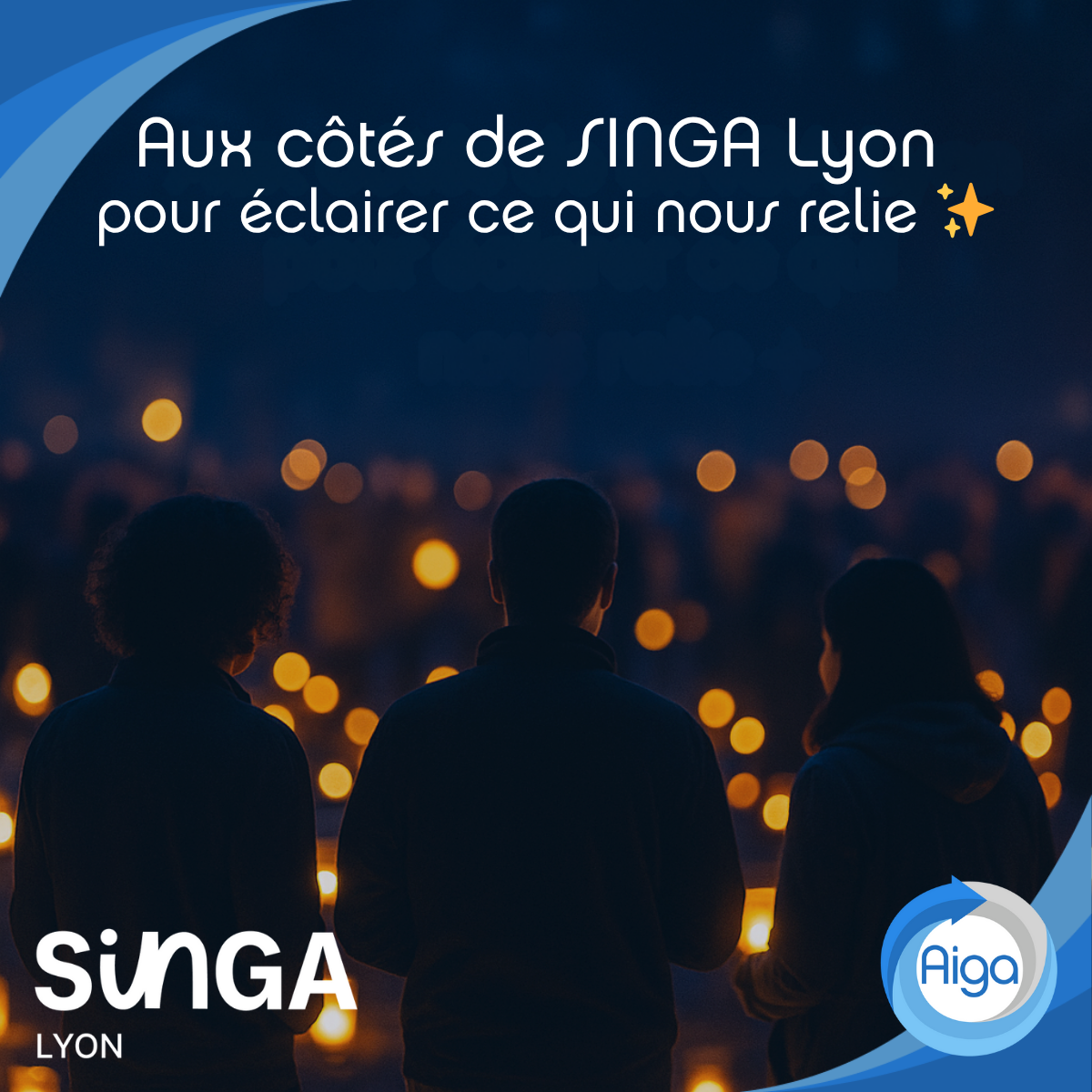 AIGA partenaire de l’illumination solidaire portée par SINGA Lyon À l’occasion de la Fête des Lumières, AIGA s’est engagé aux côtés de SINGA Lyon pour
